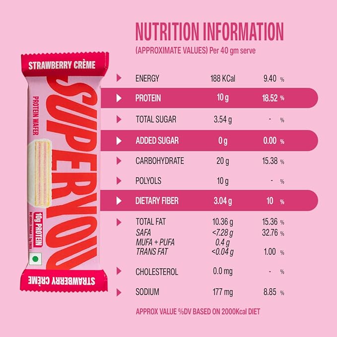 The SuperYou Protein Wafer Bar is more than just a snack; it’s a revolution in protein nutrition. Combining advanced yeast-fermented protein, high-quality fiber, and deliciously layered flavors, these bars make healthy eating effortless and enjoyable. Whether you are an athlete, a busy professional, or someone looking for a convenient protein boost, SuperYou delivers the perfect balance of taste, nutrition, and wellness. Indulge in Chocolate Perfected or relive your childhood with Strawberry Crème, and discover a snack that truly supports your active lifestyle. Available now in India, the SuperYou Protein Wafer Bar is the snack your body and taste buds have been waiting for. Embrace the crunch, savor the flavor, and fuel your life with high-quality protein!