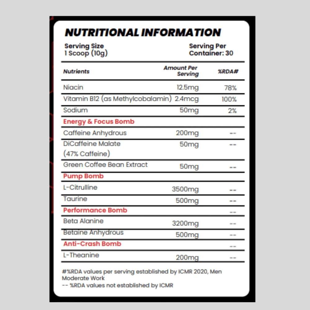 Each serving of Crush It Preworkout delivers a powerful yet balanced combination of essential pre-workout nutrients—ideal for anyone looking for an effective, no-nonsense formula. You get everything you need for strength, energy, and endurance in a clean 10g scoop that dissolves quickly and tastes refreshing.
