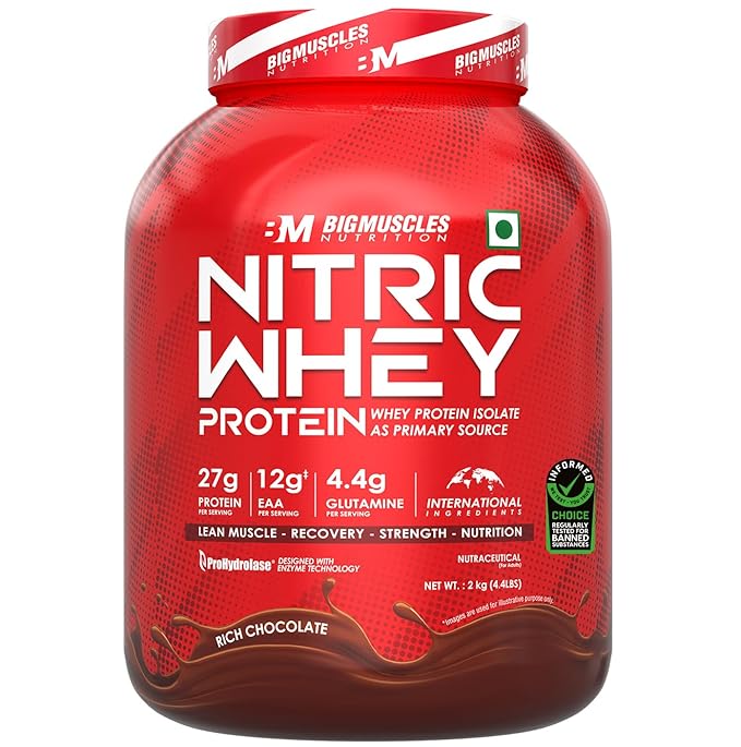 BigMuscles Nutrition Nitric Whey Protein is a high-quality whey protein supplement designed for individuals who are serious about muscle growth, faster recovery, and superior protein absorption. Available now at Greynite Nutrition, this advanced protein formula delivers 27 grams of premium whey isolate protein per serving, making it an excellent choice for gym enthusiasts, athletes, and bodybuilders aiming for lean muscle development and improved performance.