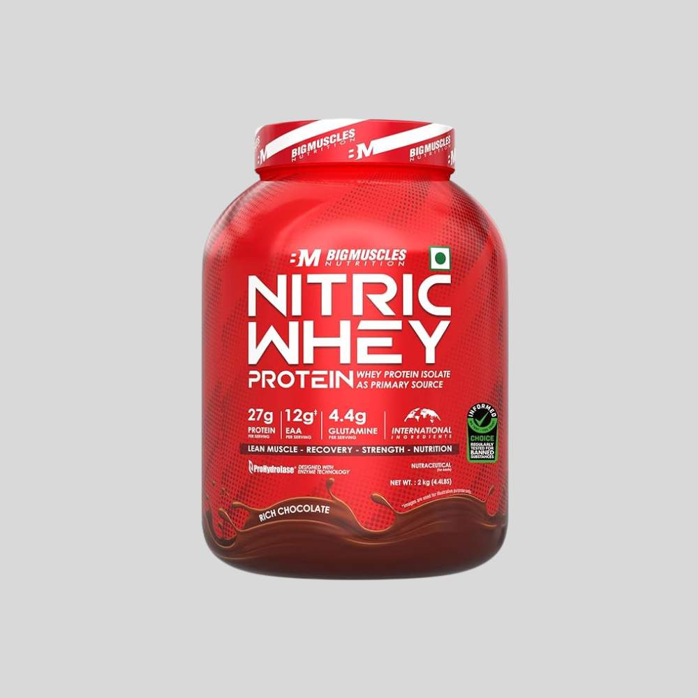 BigMuscles Nutrition Nitric Whey Protein is a high-quality whey protein supplement designed for individuals who are serious about muscle growth, faster recovery, and superior protein absorption. Available now at Greynite Nutrition, this advanced protein formula delivers 27 grams of premium whey isolate protein per serving, making it an excellent choice for gym enthusiasts, athletes, and bodybuilders aiming for lean muscle development and improved performance.