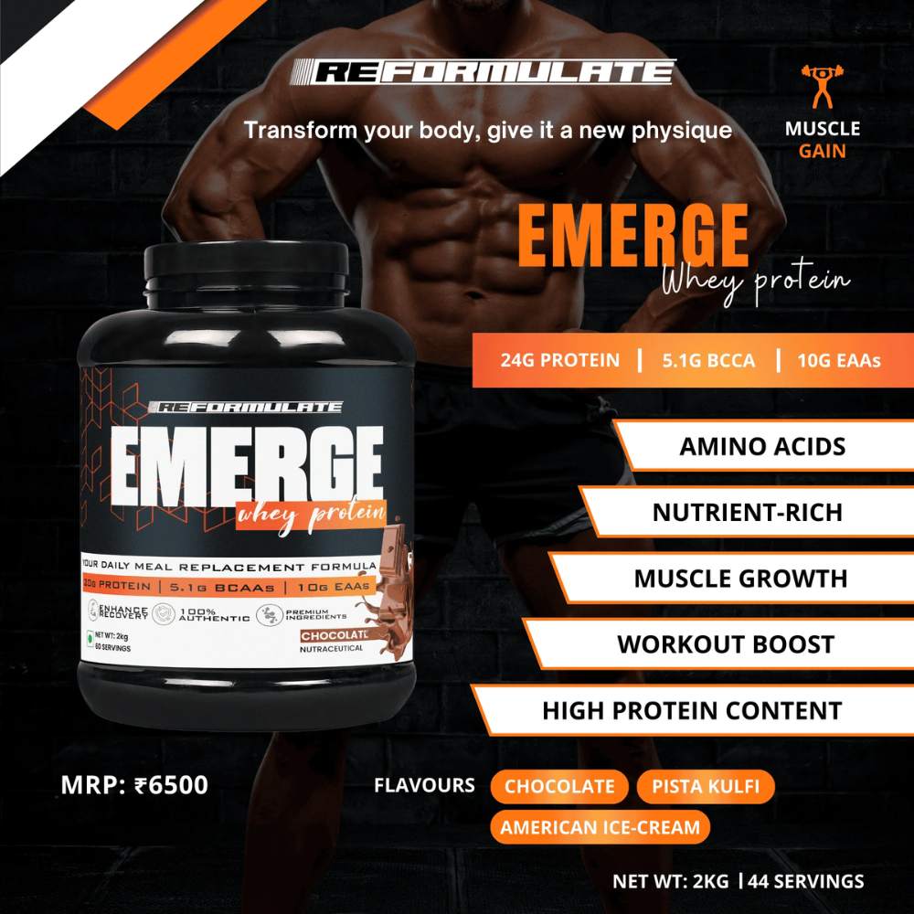 Reformulate Emerge Whey Protein – Clean, Effective, High-Quality Protein for Superior Muscle Results
