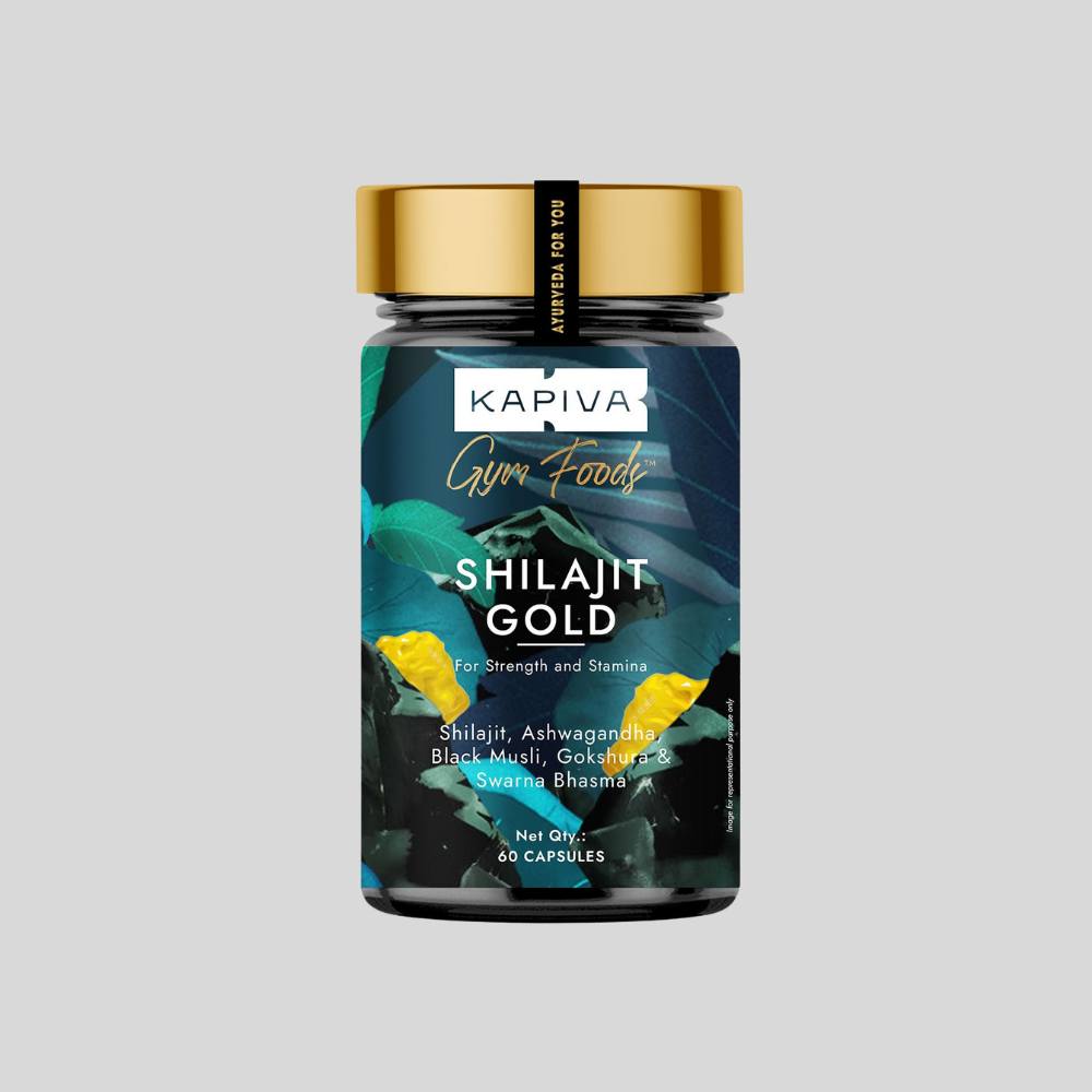 Kapiva Shilajit Gold is a premium Ayurvedic supplement designed to enhance stamina, energy, and muscle strength using the power of authentic Himalayan Shilajit and 24 Carat Gold. Each capsule is enriched with potent natural herbs like Ashwagandha, Gokshura, Safed Musali, and Coffee Arabica, scientifically combined through authentic Marana and Shodhana Ayurvedic processes for maximum efficacy and bioavailability. Sourced from 18,000 ft. high-altitude Himalayan rocks, the Grade-A Shilajit used in this formula undergoes a 7-step purification (Shodhana) with Triphala for 24 hours to ensure purity and potency. The result is a highly concentrated form of Shilajit, rich in Fulvic Acid (>60%), known to support energy production, stamina, and muscle recovery.